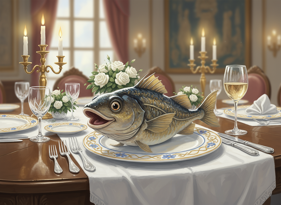 Så var det mat. Svendsen ønsket velkommen til bords. Barlindhaug organiserte kongens skål. Menyen var kokt torsk i skiver, kokte gulrøtter, melne poteter, smelta smør med persille. Det enkle er ofte det beste. Lindemanns Cavarra Rød 2022 var utmerket. Serveringspersonalet sørget for at alle hadde vått og tørt. Kokken skal ha ekstra ros, torsk til 43 i to omganger er ikke for pyser. Håkedal var morsom toastmaster. Lars Lund ble minnet med oppreist skål. Wichstrøm reflekterte over tradisjoner og forandring, vi trenger begge. Heen løftet stemningen med lystig spell. Guvernøren takket for maten med få og velvalgte ord.